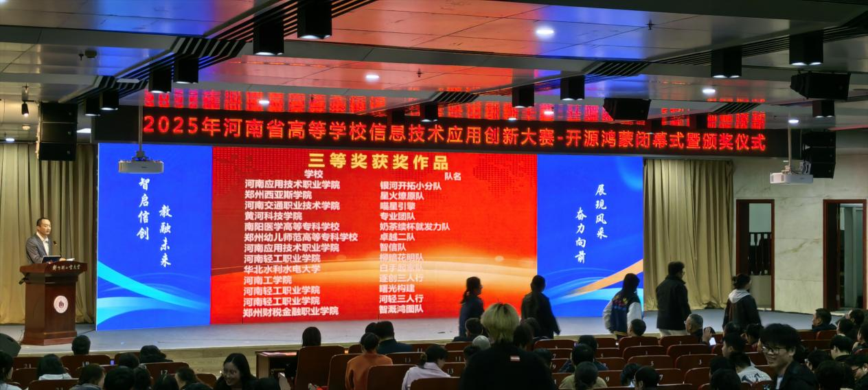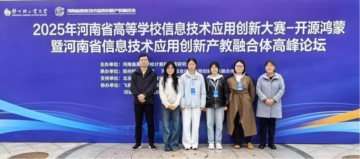 11月15日,2025年河南省高等学校信息技术应用创新大赛-开源鸿蒙赛项在郑州轻工业大学落下帷幕。我校卫生管理系关舒丹、江金璐、彭焕、黄昕颖4名同学组成2支代表队参加比赛,其中由关舒丹、江金璐组成的“奶茶续杯就发力队”在比赛中表现优异,荣获三等奖,李丰、李成鑫被评为“优秀指导教师”。