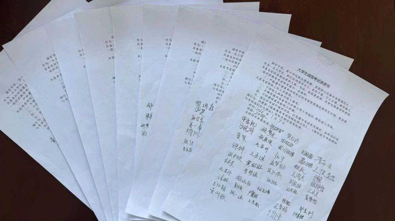 随后,班会组织全体学生郑重签订《大学生诚信考试承诺书》,字字铿锵的承诺,是同学们对诚信应考的庄严宣誓。大家集中研学《学生手册》中关于考试违纪、作弊的认定标准与处分规定,解读夹带资料、传递答案、使用通讯工具等作弊行为的具体表现及严重后果,同时对携带证件、物品摆放、规范答题等考场规则进行细致讲解,让同学们清晰厘清考试中的权利与义务,从源头上摒弃侥幸心理。