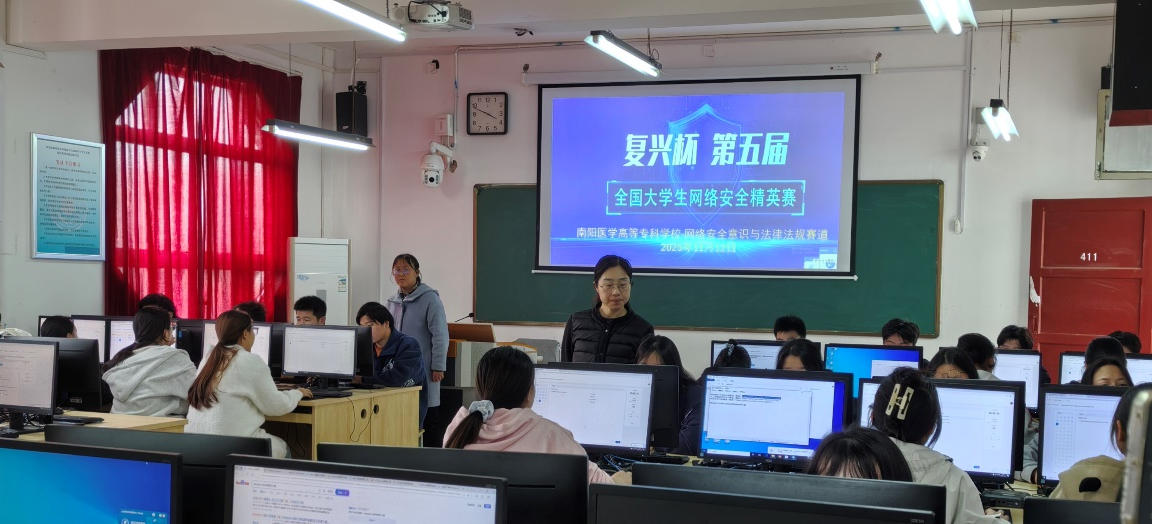 本次赛事由国家网络空间安全人才培养基地联合多单位主办,聚焦国家网络安全战略需求,设三大特色赛道,旨在选拔兼具技术实力、法治素养的复合型人才。卫生管理系作为学校赛事组织的核心力量,系领导高度重视,早在赛事启动阶段便成立专项工作组,结合通知中“以赛促学、以赛促教、以赛促用”的办赛理念,完成了学生动员、赛道匹配、备赛指导等全流程工作。分别从计算机网络技术、卫生信息管理、健康大数据管理与服务三个专业筛选出具备学习潜力的学生组建参赛队伍,针对各赛道的核心要求,组织专业教师开展专题培训,助力学子精准对接赛事需求。