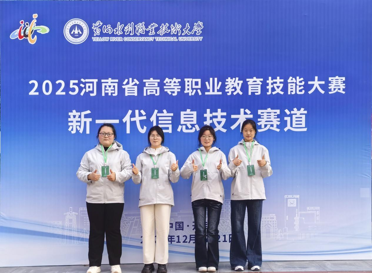 近日,河南省教育厅公布了2025年河南省高等职业教育技能大赛拟获奖名单。由我系学生江金璐、彭焕、黄昕颖、关舒丹组成的参赛团队在新一代信息技术赛道中荣获铜奖,王秋红、李丰等老师获得优秀指导教师。